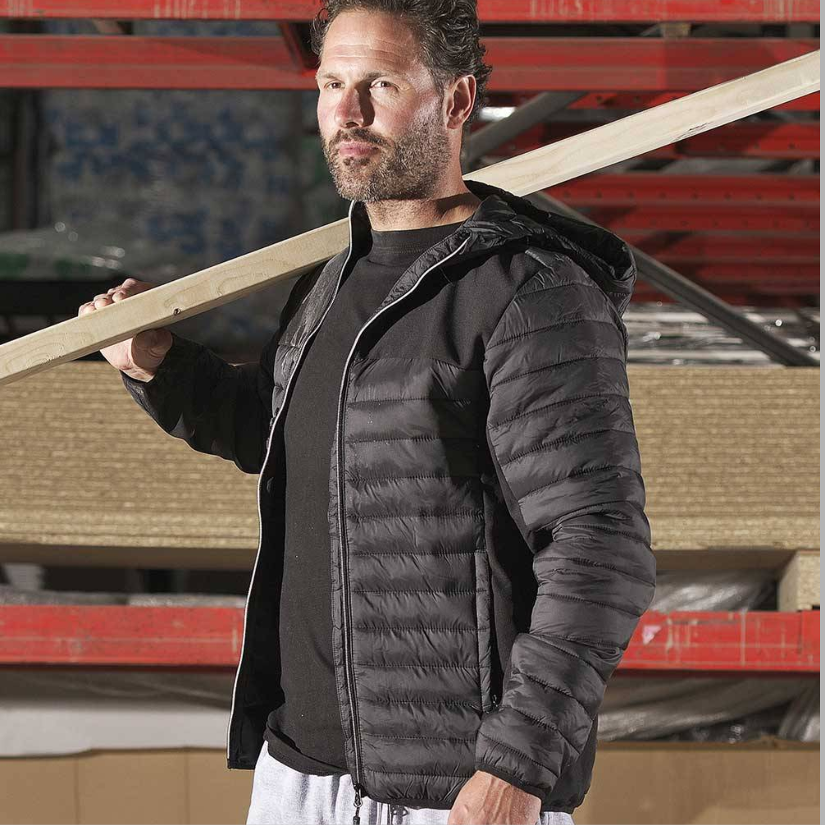 Let’s tick some boxes: ThermoFort lining for warmth water-resistance windproofing side pockets zipped chest pocket hood to keep the rain off softshell panels to keep you flexible. Anything else? Yep a great-value working jacket for a busy winter. Tick.